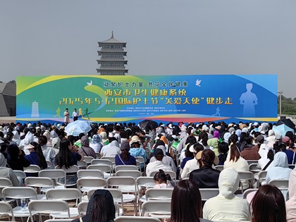 “關(guān)愛(ài)護士隊伍·守護人民健康” 主題健步走活動(dòng)在世博園舉行發(fā)表于:2026-01-16 瀏覽13次為慶祝第114個(gè)國際護士節,弘揚新時(shí)代護理職業(yè)精神,5月7日上午,由西安市衛生健康委、西安醫學(xué)會(huì )主辦,西安市第三醫院、西安市紅會(huì )醫院、西安市中醫醫院承辦的“關(guān)愛(ài)護士隊伍,守護人民健康”主題健步走活動(dòng)在西安世博園隆重舉行。全市醫療衛生系統1500余名護理工作者代表參加活動(dòng)。